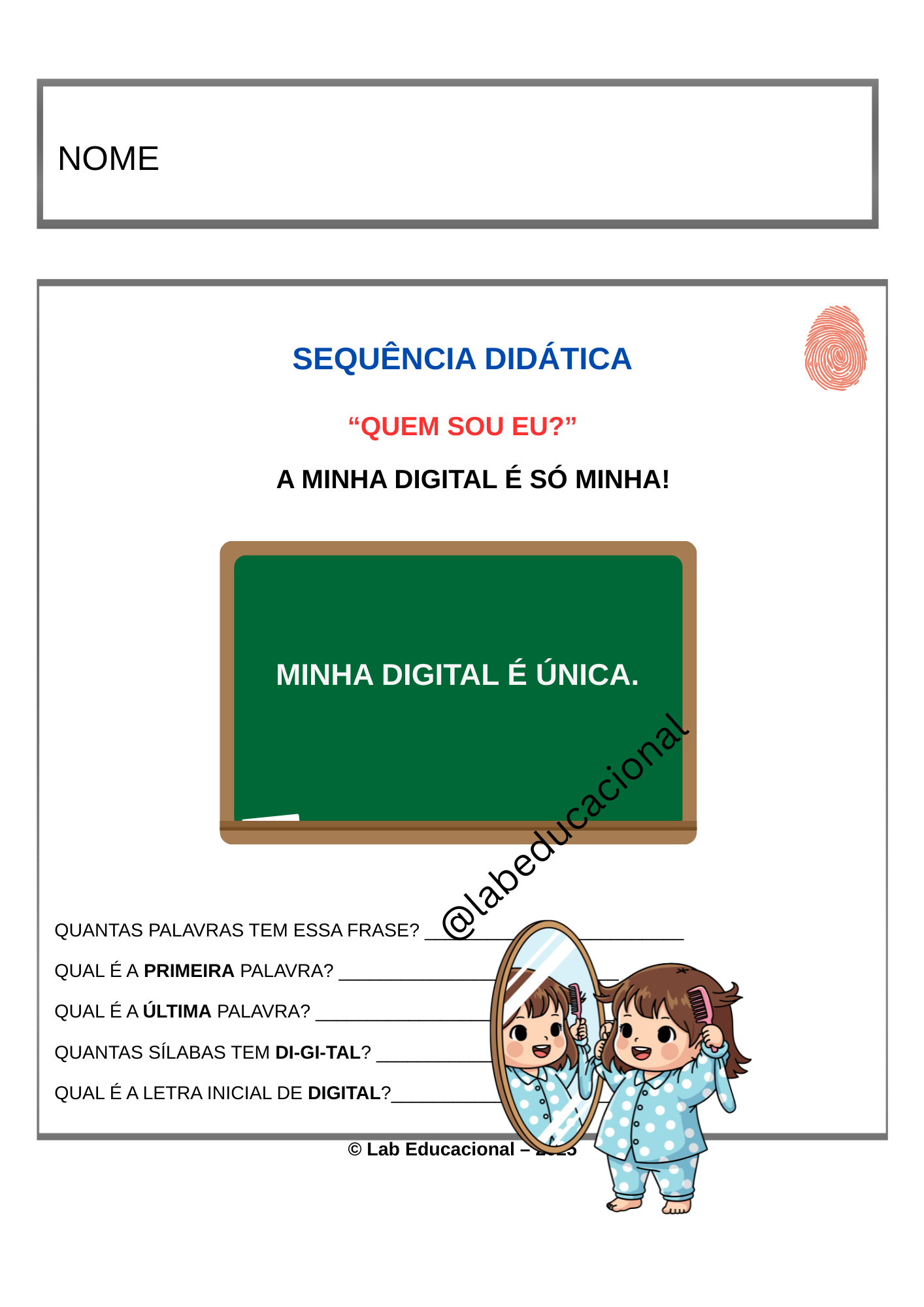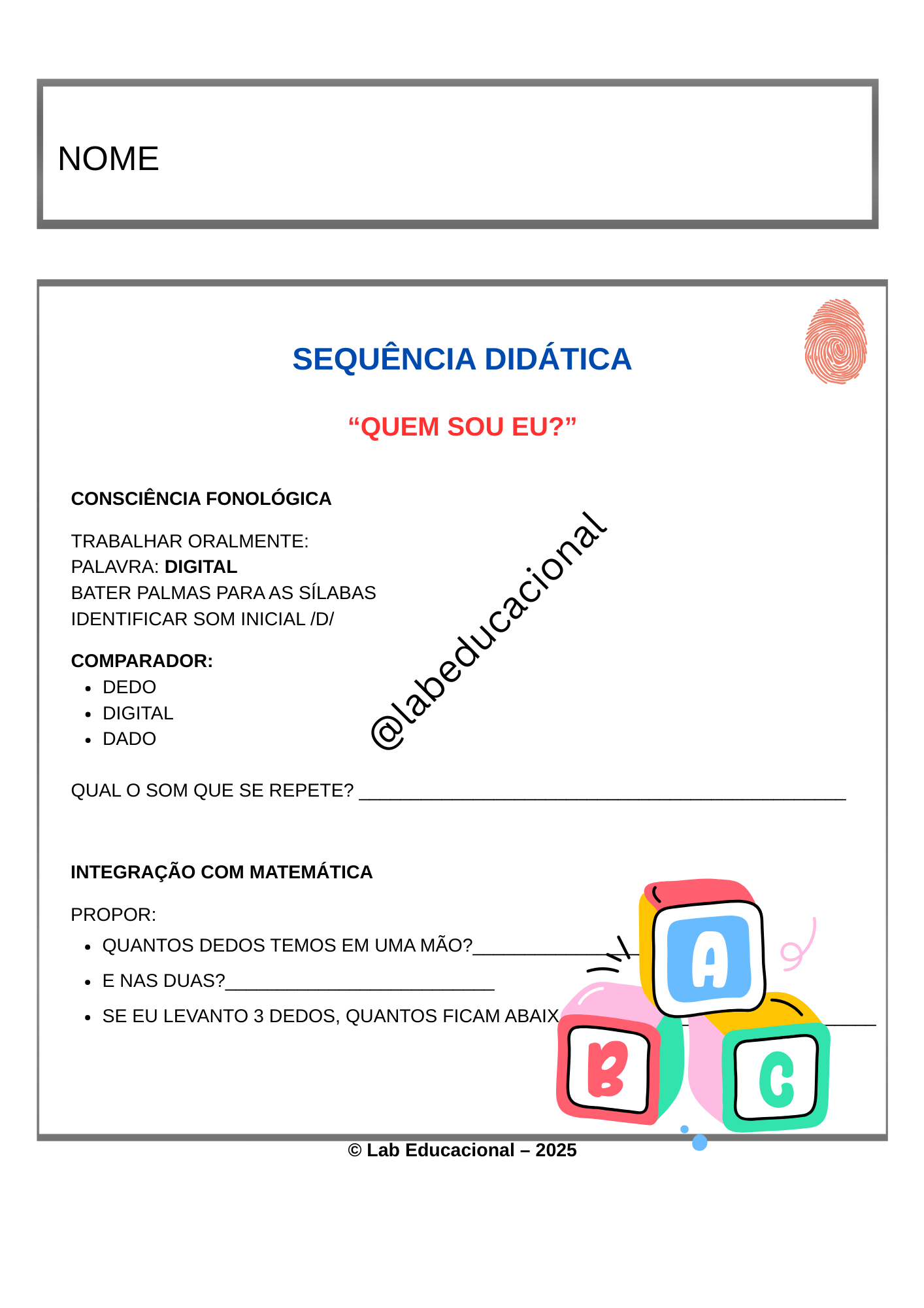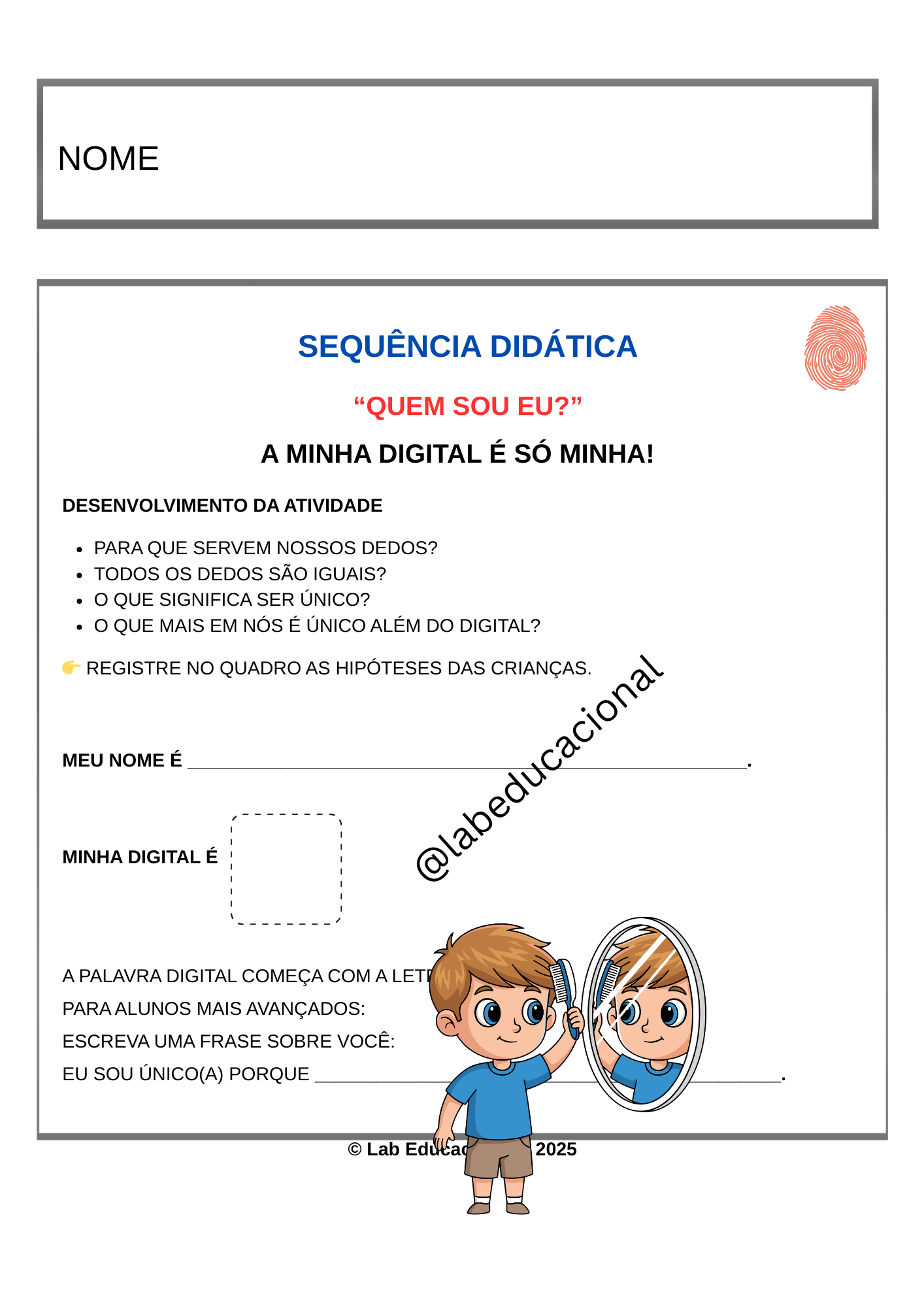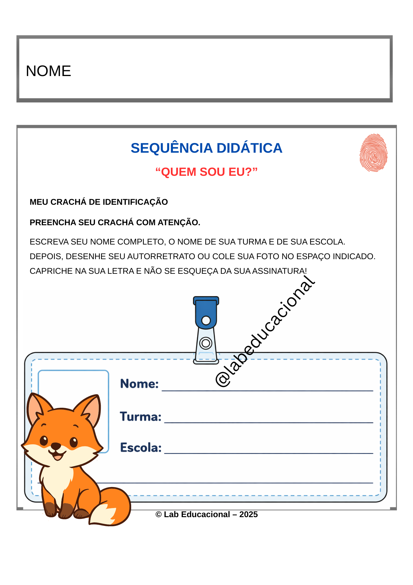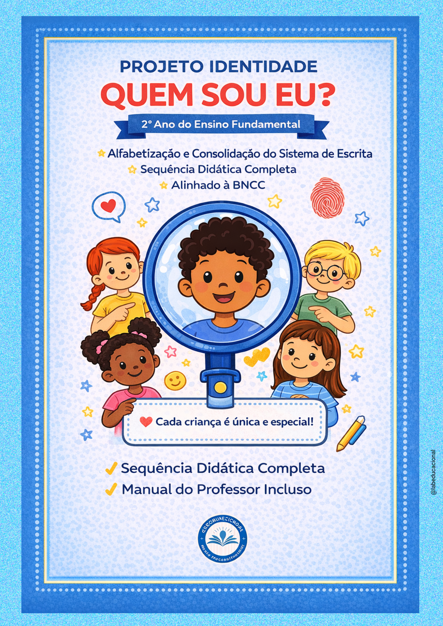 A Apostila Projeto Identidade – Quem Sou Eu? foi desenvolvido para turmas do 1º Ano do Ensino Fundamental , integrando alfabetização, consciência fonológica, matemática inicial e desenvolvimento socioemocional.