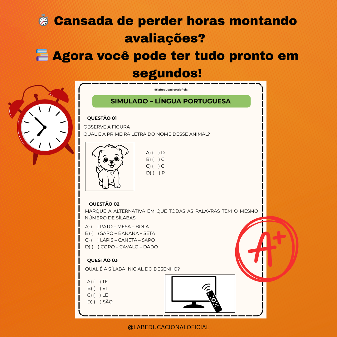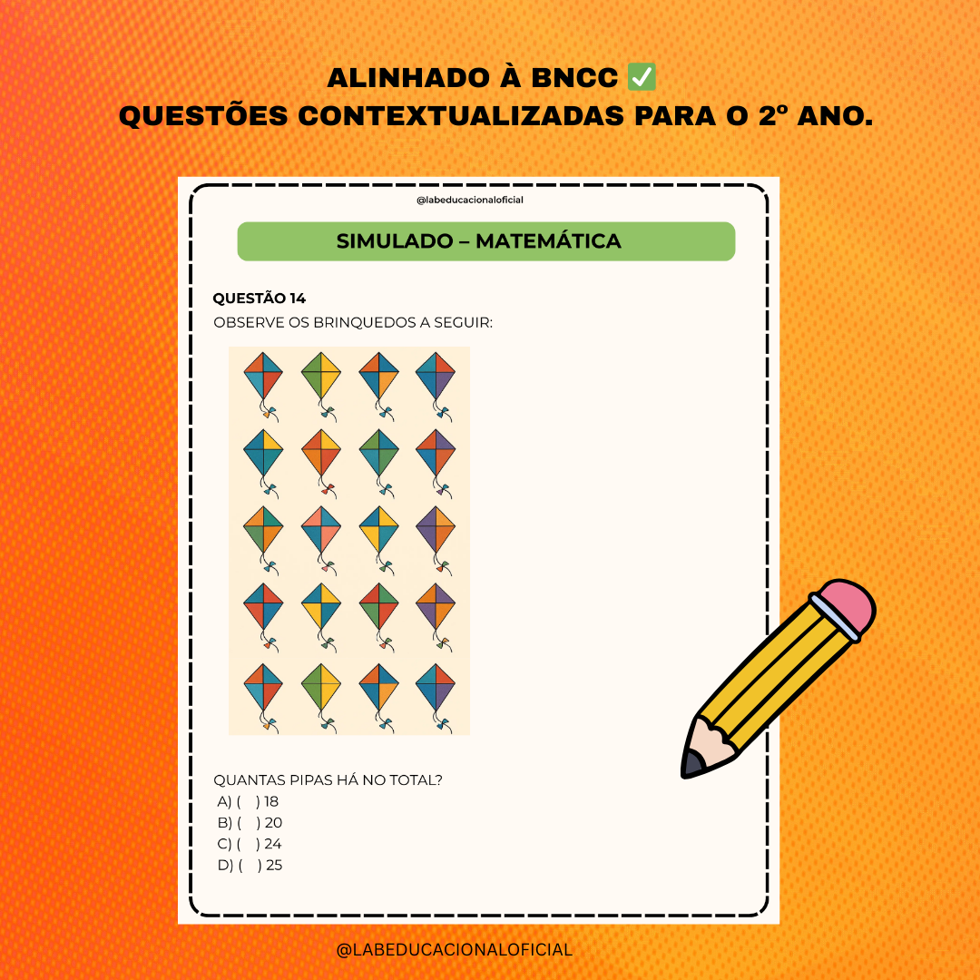 Prepare sua turma para as avaliações externas com um simulado completo e pronto para aplicar , alinhada às habilidades essenciais dos anos iniciais. Material pensado para familiarizar os estudantes com o formato da prova , desenvolver competências de leitura, escrita e cálculo lógico, e monitorar a evolução ao longo do bimestre/trimestre.